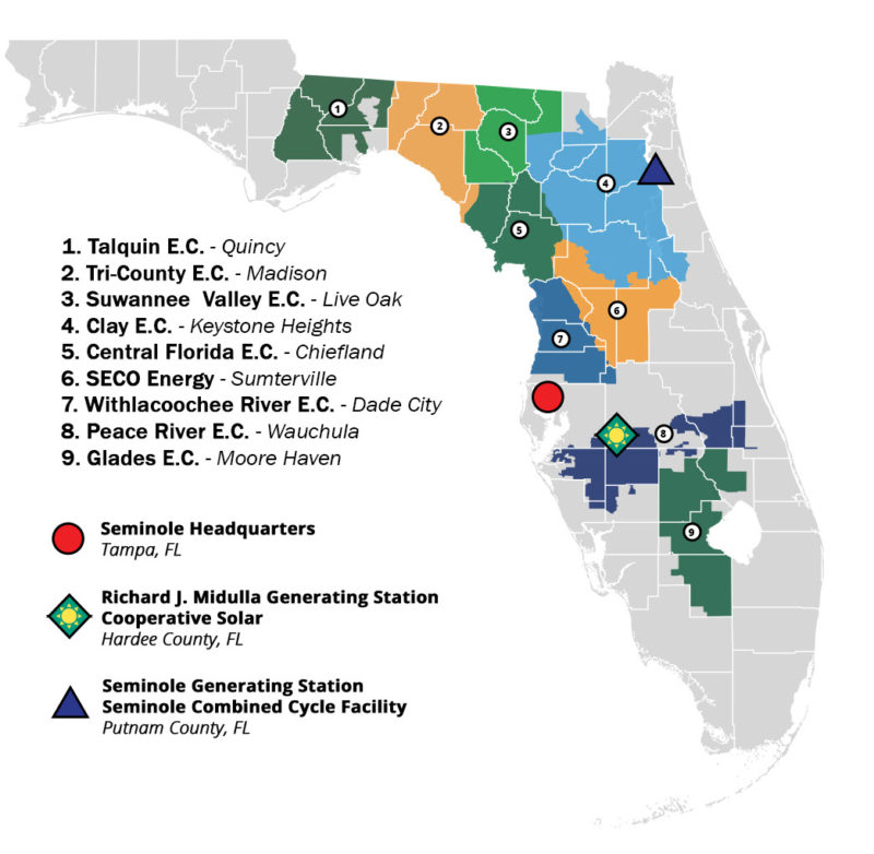 Based in Tampa, Florida, Seminole is one of the country’s largest generation and transmission cooperatives. Its purpose is to provide essential wholesale services to its Members through a balanced, diversified portfolio of safe, affordable, and reliable energy resources. Seminole and its Members collectively serve 1.8 million individuals and businesses in 42 Florida counties. For more information, visit /.
