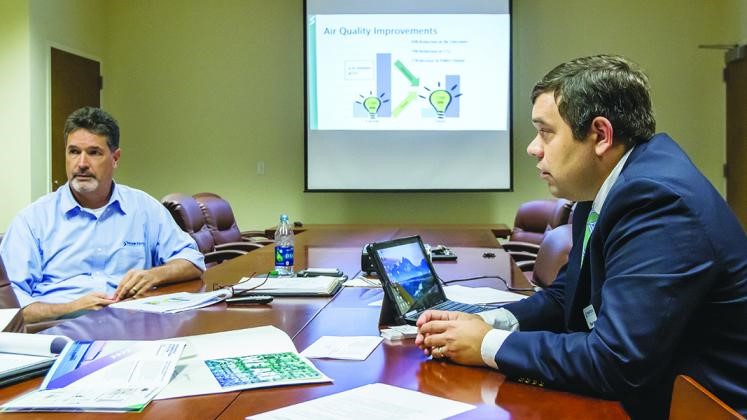 Tom Reed and Ryan Hart of Seminole Electric talk Thursday about plans the company has for upgrading the Palatka plant.